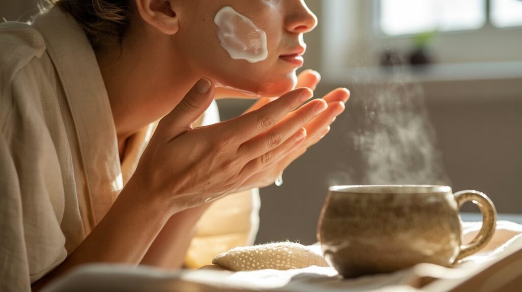 In the morning: cleanse softly, apply an antioxidant serum like vitamin C, follow with hydration and SPF. Don’t forget your neck and chest—they age in sync with your face.